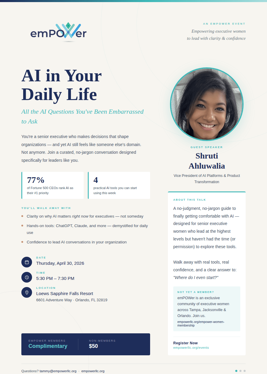 All the Al Questions You’ve Been Embarrassed to Ask You’re a senior executive. You make decisions that shape organizations. And yet Al still feels like someone else’s domain. Not anymore. Join a curated conversation designed specifically for leaders like you — no jargon, no hype, just the clarity you need.